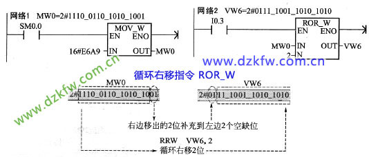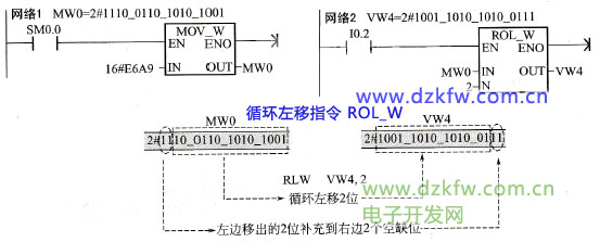 图3-6 西门子plc ROL_W 循环左移指令应用示例