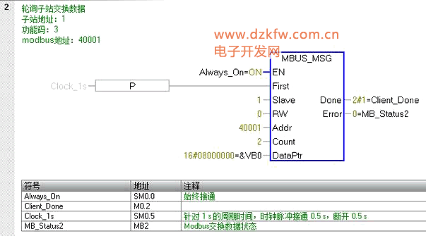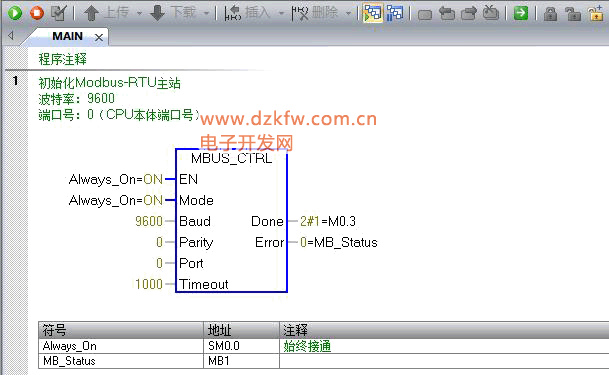 - Mode:通信协议的类型;0=PPI协议;1=Modbus协议;