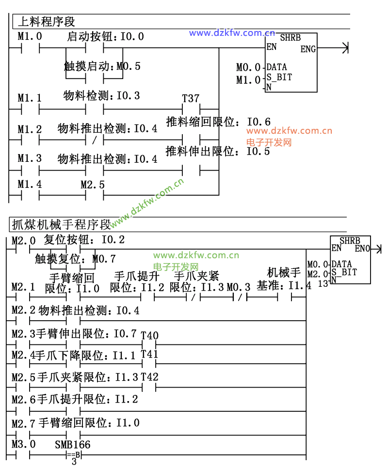 图4 上煤检测程序段 图5 抓煤机械手程序段