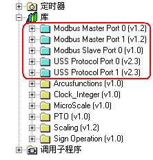 西门子在 Micro/WIN V4.0 SP5 中正式推出 Modbus RTU 主站协议库(西门子标准库指令),如下图所示。
