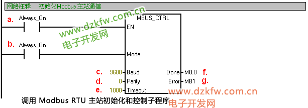 1. 调用 Modbus RTU 主站初始化和控制子程序