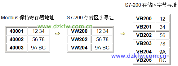 S7-200 通过 Modbus Master 和 Slave 协议库通信时,Modbus 地址和 S7-200 内存储区地址的 映射关系都类似。