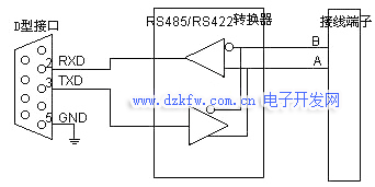 图2:DM系列RS485/RS422接口转换器原理图(全双工)