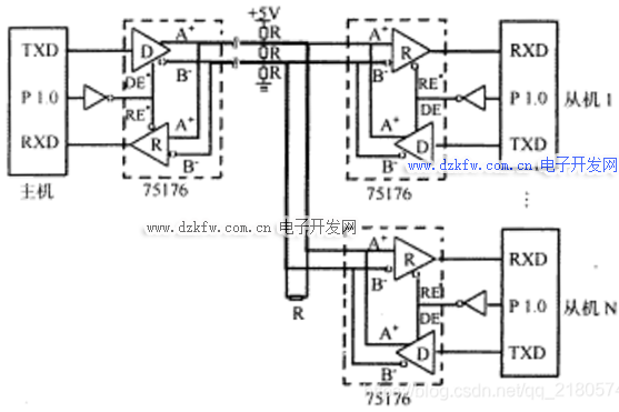 RS422/RS485通信接口原理图,RS-485通讯网络示意图