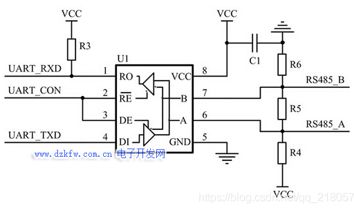 控制策略:UART_CON为低电平,485处于接收状态;UART_CON为高电平,485处于发送状态。通过切换UART_CON的电平来达到485收发状态的切换。