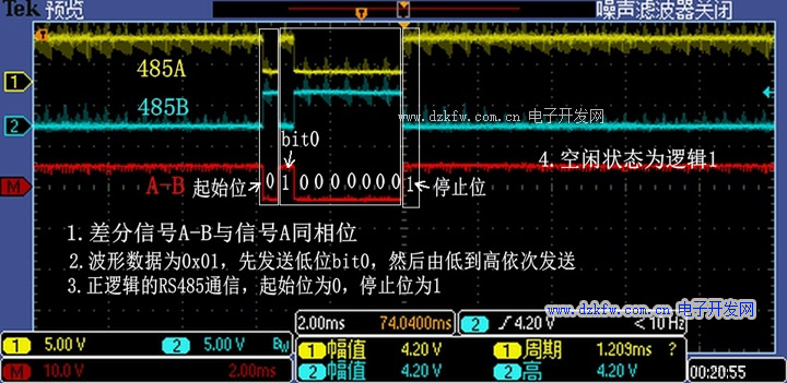 RS485特点:发送端 AB间的电压差