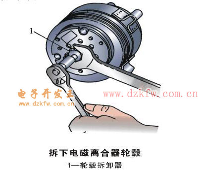 2)拆下电磁离合器的轮毂(见图)。
