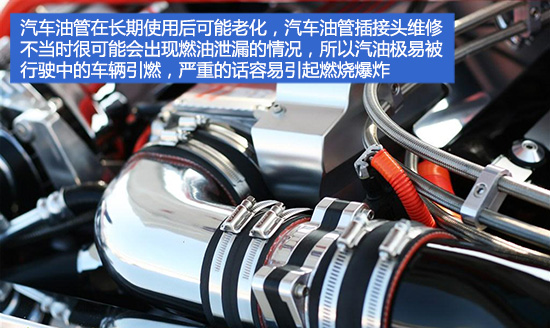 除电路以外,汽车自燃一般也会与汽车燃油有直接联系。由于汽车油管在长期使用后可能老化,汽车油管插接头维修不当时很可能会出现燃油泄漏的情况,而汽油极易被行驶中的车辆引燃,严重的话容易引起燃烧爆炸。