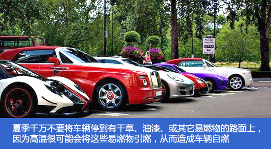 车辆在引擎启动的情况下,它的排气管温度会达到800摄氏度。因此夏季千万不要将车辆停到有干草、油漆、或其它易燃物的路面上,因为高温很可能会将这些易燃物引燃。虽然这个事故发生的机率很小,但日常驾驶中还是要尽量避免。