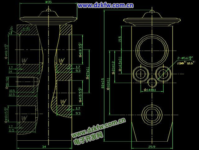 膨胀阀外形图中标'☆'为产品的关键尺寸,以H型热力膨胀阀为例