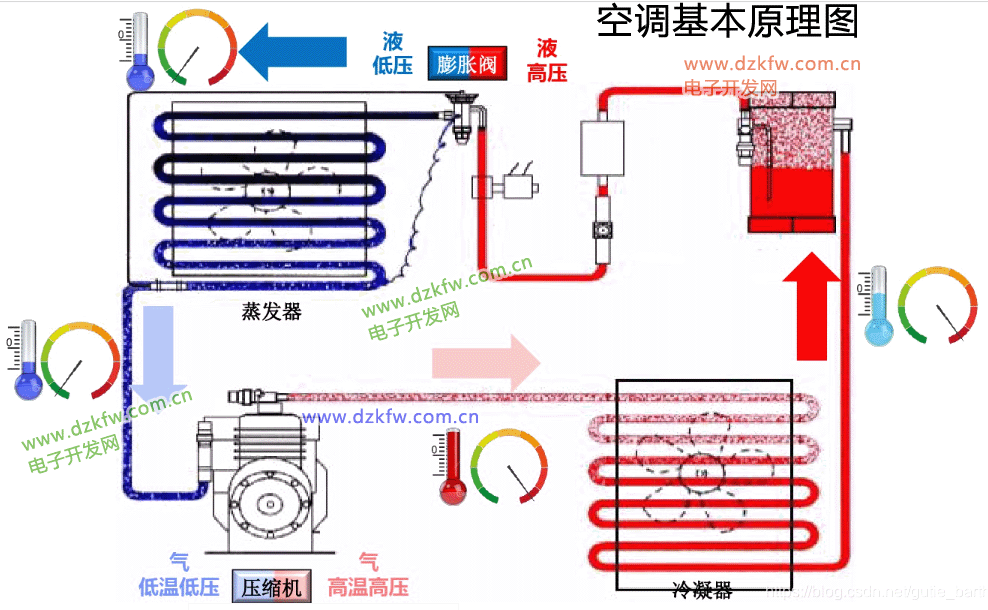 1、节流作用:高温高压的液态制冷剂经过膨胀阀的节流孔节流后,成为低温低压的雾状的液压制冷剂,为制冷剂的蒸发创造条件;