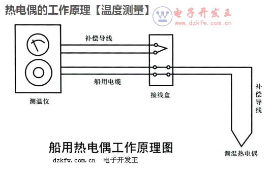 热电偶测温的基本原理是两种不同成份的材质导体组成闭合回路,当两端存在温度梯度时,回路中就会有电流通过,此时两端之间就存在电动势——热电动势,这就是所谓的塞贝克效应。两种不同成份的均质导体为热电极,温度较高的一端为工作端,温度较低的一端为自由端,自由端通常处于某个恒定的温度下。根据热电动势与温度的函数关系, 制成热电偶分度表;
