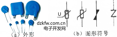 压敏电阻是一种在某一特定电压范围内其电阻值隨电压的增加而急剧减小的敏感元件,主要用于电路的过压保护,是家用电器中的安全卫士,当压敏电阻两端的电压低于其标称电压时其内部的晶介层几乎是绝缘的,呈高阻抗状态当压敏电阻两端的电压(遇到浪涌电压,操作过电压等)高于其标称电压时,其内部的晶界层的阻值急剧下降,呈低阻抗状态,外来的浪涌过电压,操作过电压就通过压敏电阻以放电电流的形式被泄放掉,从而起到过压保护作用,压敏电阻外形及图形符号如图
