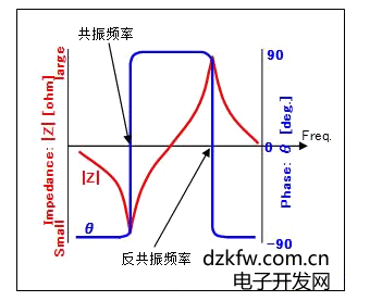 阻抗Z变为电阻元件时,两点之间的频率。在这两点上,相为0。