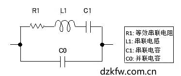由电阻、电感和电容组成的石英晶体的共振特性图
