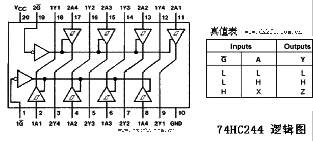 逻辑芯片功能:八缓冲/线路驱动器(三态)