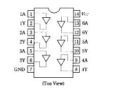 74LS07是集电极开路输出的六缓冲器/驱动器。管脚排列如下图,其中14脚Vcc接+5V电源,7脚GND接电源地,1A是通道1的输入端、1Y是通道1的输出端,2A是通道2的输入端、2Y是通道2的输出端,依此类推。输出和输入是同相位的,但是输出端要通过电阻外接到正电压上,这个外接正电压最高可以达到30V。