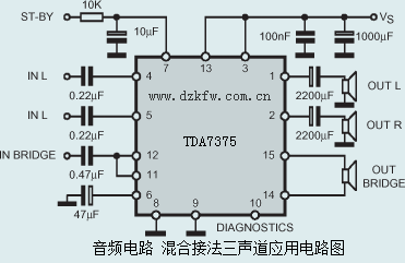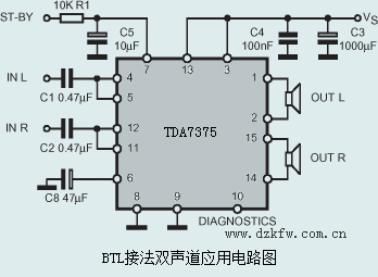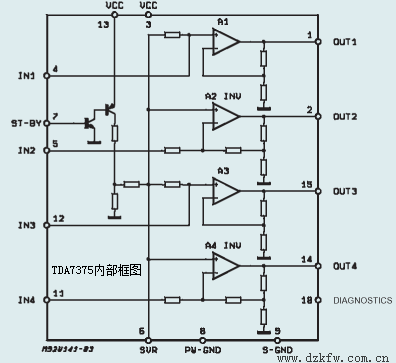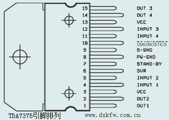 TDA7375中文资料:四声道环绕立体声功率放大电路TDA7375,广泛应用于汽车音响电路中,亦应用于多媒体音响设备中。