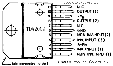 TDA2009管脚定义:1脚:1.2V——左声道输入