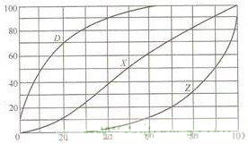 阻值变化特性是指电位器的阻值随活动触点移动的长度或转轴转动的角度变化的关系,即阻值输出函数特性。常用的阻值变化特性有3种,如图所示。