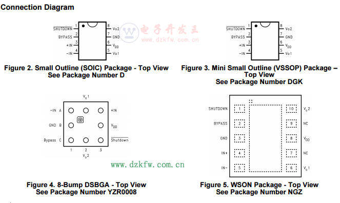 LM4889需要的外部元件极少,不需要输出耦合电容器或启动电容器,因此适合移动电话和其他低电压应用。该LM4889具有低功耗的停机模式、内部误关断保护机制、噪音消除功能,可以配置外部的增益设定电阻。