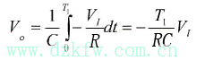 令开关S1合到输入信号V1一侧,积分器对V1进行固定时间Tl的积分,积分结果为: