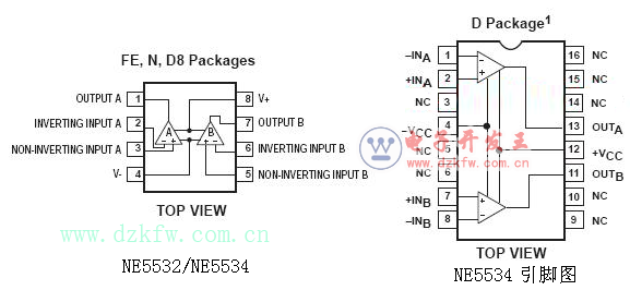 NE5532、NE5534引脚功能定义图