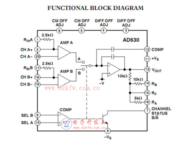 AD630能够作为一个精确的运放,有两个差分输入阶和一个精确的比较器(用于选择有源前段acTIvefrontend)。比较器的快速响应时间与电压转换速率【slewrate就是电压转换速率(SlewRate),简写为SR,简称压摆率。其定义是在1微秒或者1纳秒等时间里电压升高的幅度,直观上讲就是方波电压由波谷升到波峰所需时间,单位通常有V/s,V/ms,V/μs和V/ns四种。电压转换速率用示波器就可以测量。】和线性放大器最小转换失真的快速设置想耦合。另外,在-100dB@10kHz,AD630在通道间的串扰极低。