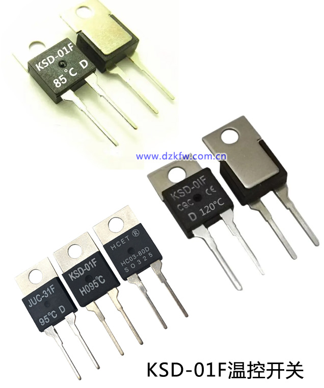 KSD-01F是一种比较常用的温控开关,它采用TO-220封装形式,属于突跳式、单极/单掷的接触点的100%导通结构。工作原理是:当设备温度高于安全温度时,这个温度会传递到经冲制过的双金属片,双金属片干问候便迅速动作,这样切断或接通电路(常闭或常开两种),当温度下降到安全复位温度时,双金属片又迅速接通或闭合电路,重复工作以保证产品温度保护的安全性。