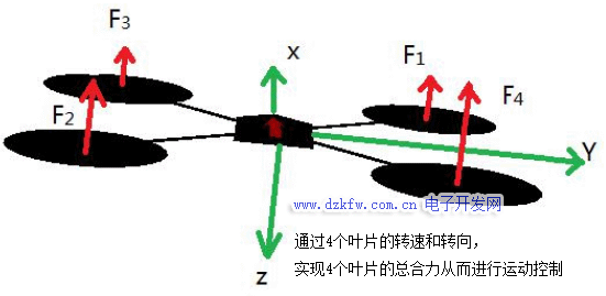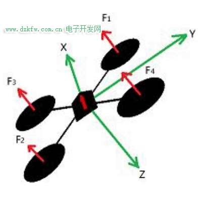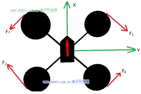 安螺旋桨布局位置不同四旋翼无人机可分为“十”和“X”型结构,以“X”型结构为例,下面分析“X”型结构的飞行原理。