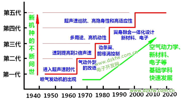 20世纪40年代末,二次世界大战结束后,采用喷气发动机的战斗机获得了较大发展。进入超声速时代,习惯上用第一代、第二代、第三代等对战斗机给出分类(国内外分法有所不同)。