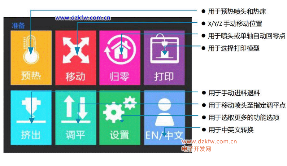 (2) 移动:喷头\热床位置调节