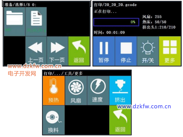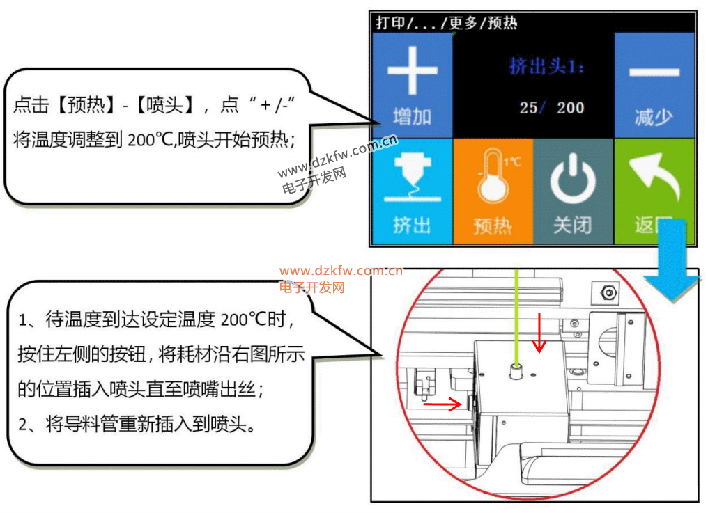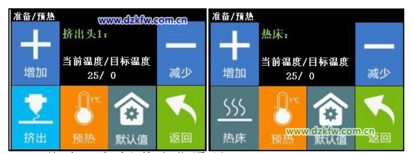 (1) 预热:喷头\热床预热操作