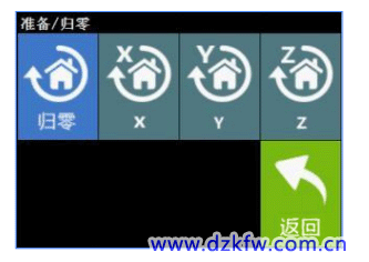 第二步:点击主界面【归零】选项,进入“归零”界面;点击【归零】按钮,喷头回到零点;