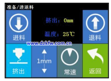 (8)挤出:手动进退耗材