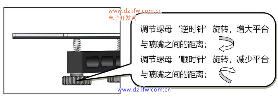 选取对应的点,喷头会移动到对应位置,调节热床下的旋钮进行调平。