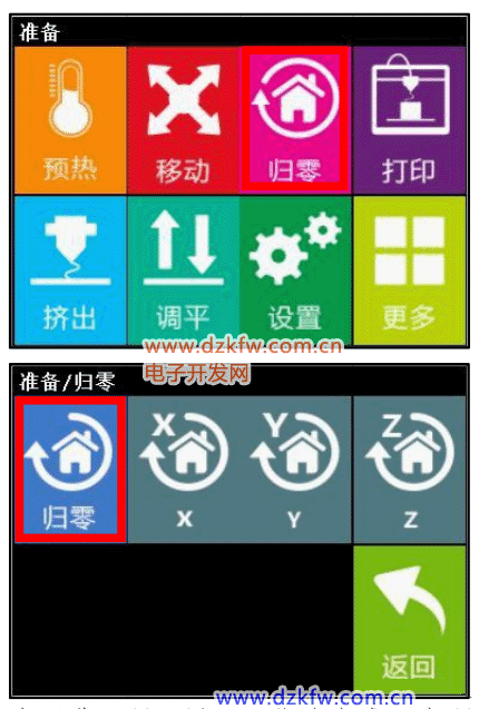 (3) 归零:喷头和热床回零点
