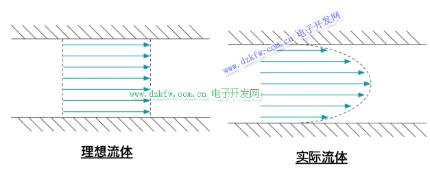 没有粘度或压缩性的流体称为理想流体,具有粘度的流体称为真实流体。例如日常生活中常见的水和空气,都是真实的流体。河流中的水流沿河岸速度减慢,离开河岸时速度加快。涡流也可能发生在河流中。这些是由于流体的粘性而发生的现象,是真实流体的特性。另一方面,理想流体被定义为没有粘度并且不能通过施加力来压缩的流体。在前面的河流示例中,没有粘性也没有阻力,因此河岸和河中之间的速度没有变化。此外,由于流体之间没有摩擦(剪切力),因此不会产生涡流。