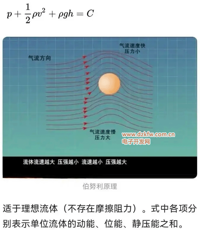丹尼尔·伯努利在1726年提出了“伯努利原理”。伯努利原理是流体动力学中的基本原理之一,它描述了流体在不同速度下的压力变化。这是在流体力学的连续介质理论方程建立之前,水力学所采用的基本原理,其实质是流体的机械能守恒。即:动能+重力势能+压力势能=常数。伯努利原理的核心是速度和压力的关系。其最为著名的推论为:等高流动时,流速大,压力就小。