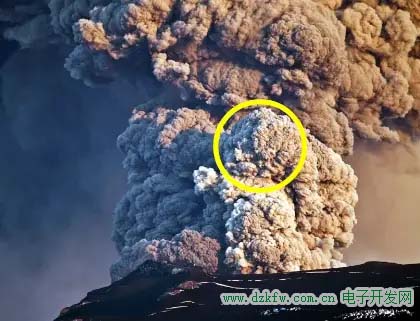 球除了受到阻力之外,还受到周期性的横向激振力。湍流是更常见的流动,比如这个网球后的流动。网球后的流动很乱,找不到规律,这时球的阻力主要由前后的压差力产生,摩擦力只占一小部分。定量来看,蠕动流中粘性力产生的摩擦阻力占总阻力的三分之二,而一般的高雷诺数下摩擦阻力只占总阻力的10%或更少。湍流中的雷诺数:我们知道,湍流都是对应很高的雷诺数。也就是粘性力很小的时候,由于其内部存在着复杂的剪切流动结构,湍流对雷诺数的变化是很敏感的。比如在这个火山喷发的湍流流动中,含有复杂的大大小小的涡团。圆圈所示的大概是这个流动中最大的涡团尺寸。