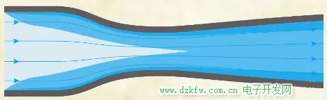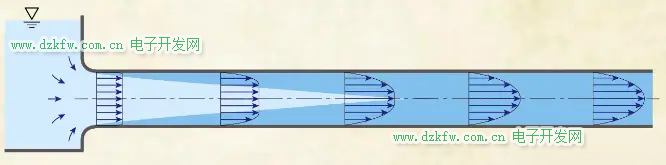 它并不是典型的管道流动,而是和管道的入口段流动类似,壁面的边界层很薄,主流是满足伯努利方程的。边界层的影响是改变了主流的有效流通面积,所以伯努利方程还是可以计算这类问题的,但面积要做修正。