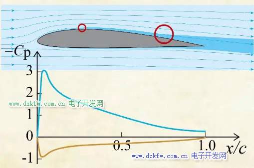 当流动马赫数很低时,雷诺数是流动的主要决定因素,比如这个绕机翼的低速流动中,外流是符合伯努利方程的。雷诺数通过影响边界层厚度而影响外流的压力分布。这其中还有两个更大的影响,就是雷诺数会影响边界层转捩点和分离点。