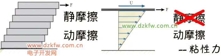 进一步说明前面提到三种种力的区别:附着力是一种静态力,存在于固体或液体的接触面;表面张力也是一种静态力,存在于液体自由表面;粘性力是一种动态力,存在于发生持续剪切变形的流体内部。