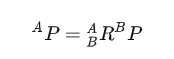 若我们已知矢量相对于B的定义^BP,现在想求矢量相对于A的定义,且两个坐标系原点重合,我们已知^A_BR,那么我们是可以求解的。