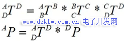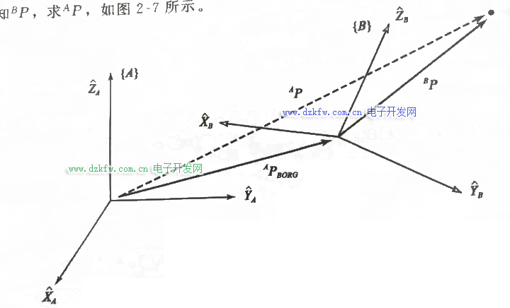 此时,我们用矢量相加的办法求点P相对于A的表示^AP: