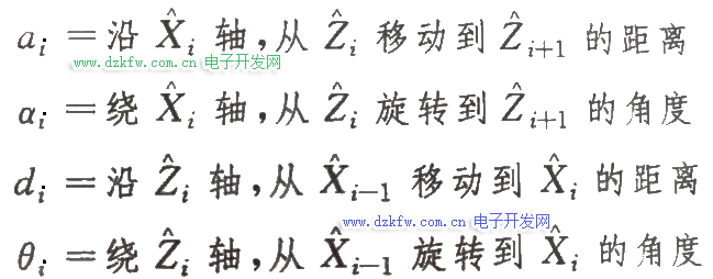 上图就是一种连杆描述方式,用四个参数描述两个连杆的相对位姿关系: