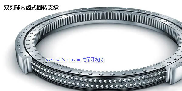 双排球式回转支承具有三个座圈,钢球和隔离块可直接排入上下滚道,根据受力状况,安排了上下两排直径不同的钢球。