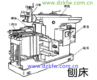 刨床系指用刨刀加工工件表面的机床。刀具与工件做相对直线运动进行加工,主要用于各种平面与沟槽加工,也可用于直线成形面的加工。