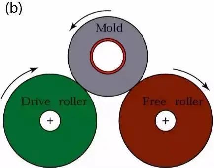 离心铸造:是将金属液浇入旋转的铸型中,在离心力作用下填充铸型而凝固成形的一种铸造方法。