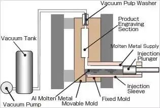 真空铸造:通过在压铸过程中抽除压铸模具型腔内的气体而消除或显著减少压铸件内的气孔和溶解气体,从而提高压铸件力学性能和表面质量的先进压铸工艺。
